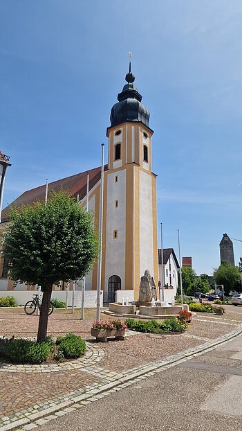 Die kath. Pfarrkirche St. Nikolaus liegt an der Schloßstraße (Nr. 1).
