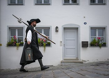 Begleiten Sie den Nachtwächter Neuburgs auf seinem abendlichen Rundgang durch die Obere Altstadt. Allerlei Kurioses hat der gesprächige Geselle über die Bewohner der Residenzstadt zu berichten. Viele kleine Geheimnisse und amüsante Anekdoten ranken sich um die Straßen, Plätze und Häuser.
